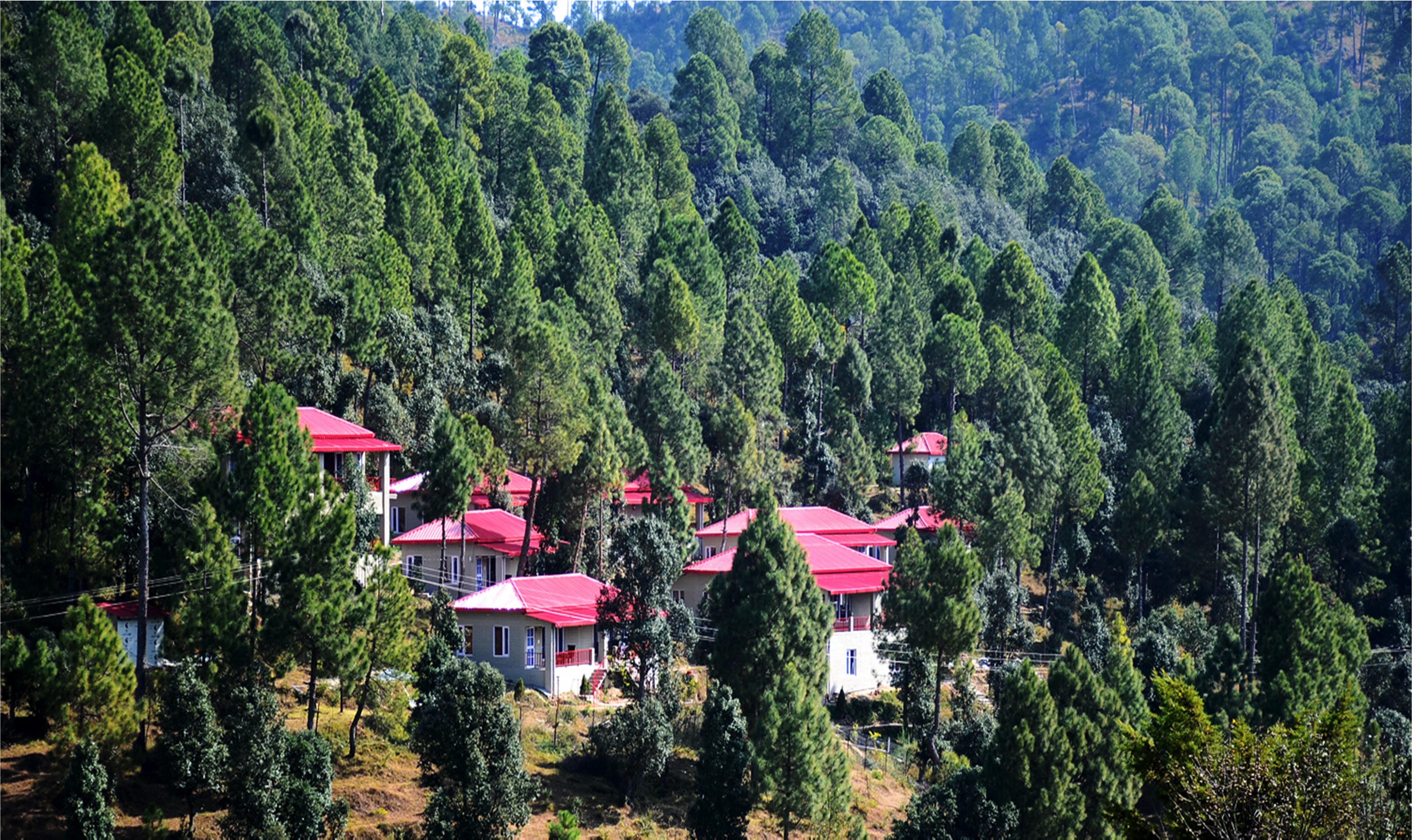The Camp is spectacularly set in the mountains, perched on top of terraced fields with a spectacular view of the underlying Doon Valley and Mussoorie & other mountain ranges in front. This lodge is located at an altitude of 1850 m (6100 ft) and this ensures a cool and comfortable climate all year round. The lodge is located in Uttarakhand state and is easily approachable from Delhi (8 hrs drive). It is just a short 2 hr drive from Dehradun & Paonta Sahib or a 3 hrs drive from Saharanpur. With minimum inhabitation all around this is a quiet getaway for anyone looking to remove themselves from the hustle and bustle of urban life. While it is a great place for people looking at just relaxing and soaking in the natural beauty it is a super destination for the activity inclined. There are mouth watering mountain & river activities that one can indulge in and some good quality sightseeing trips. Also there are a number of short walks available all around and one gets a spectacular view of the snow clad Himalayan peaks from just a 5 min walk from the lodge.